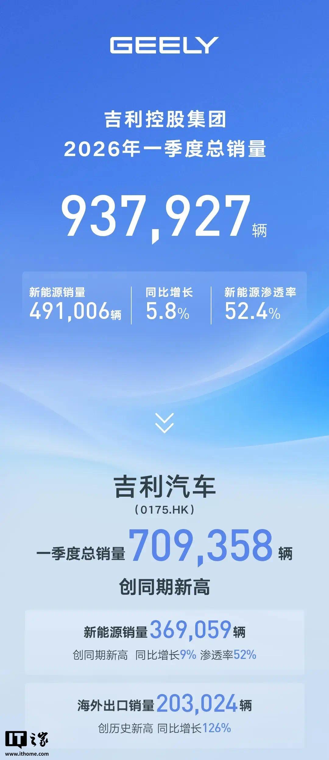 IT之家 4 月 14 日消息证券配资开户,吉利控股集团今日发布了 2026 年第一季度总销量: